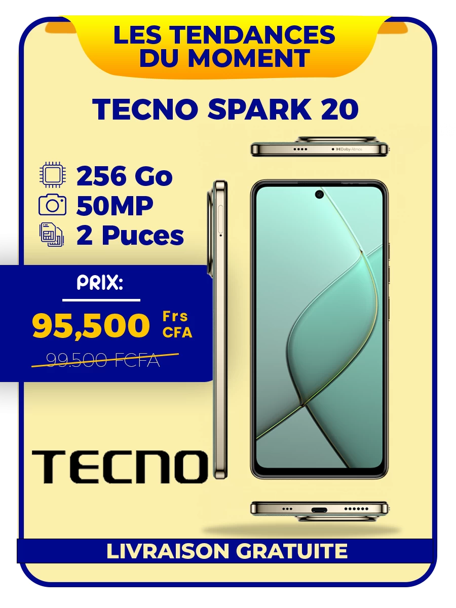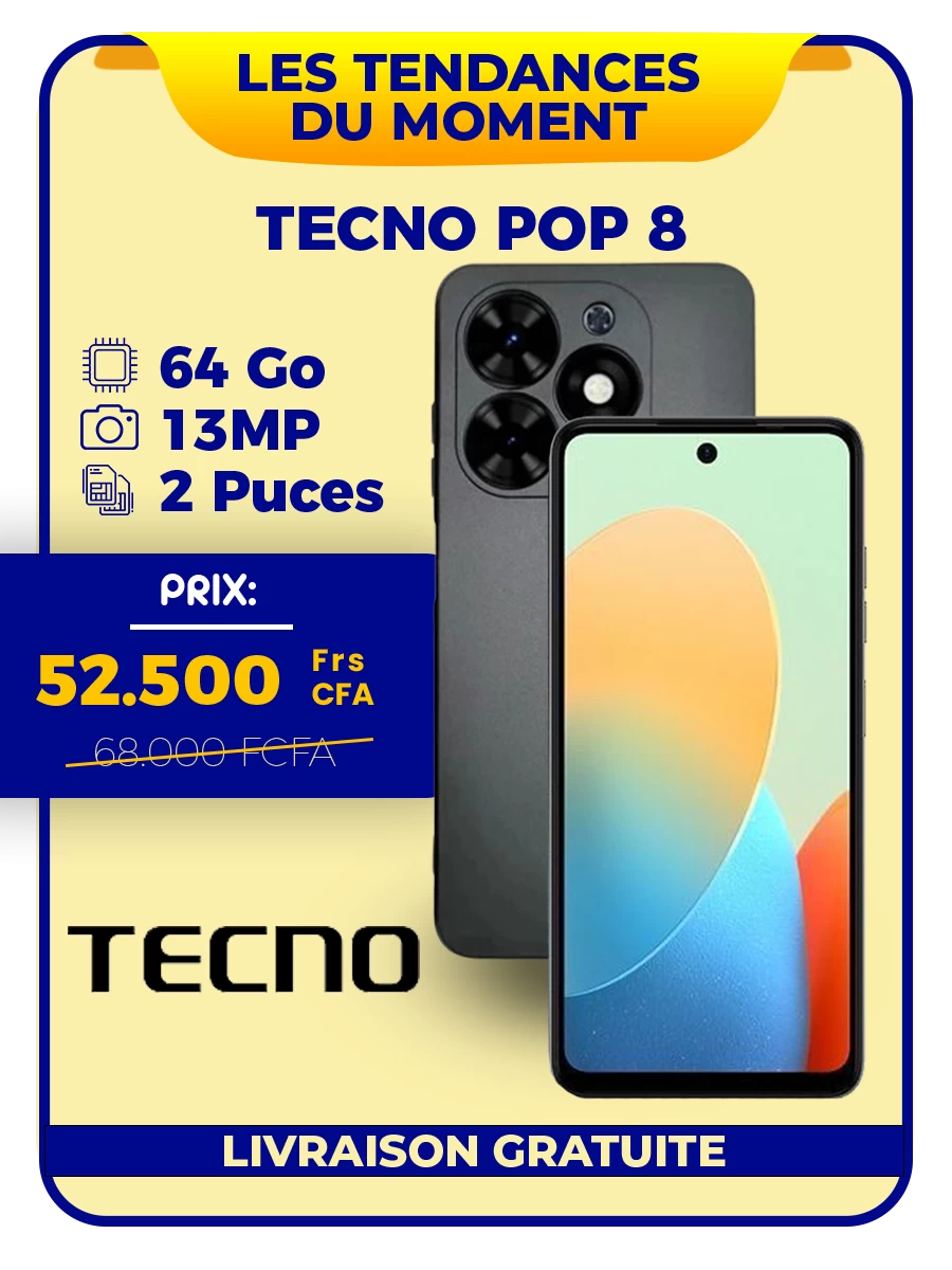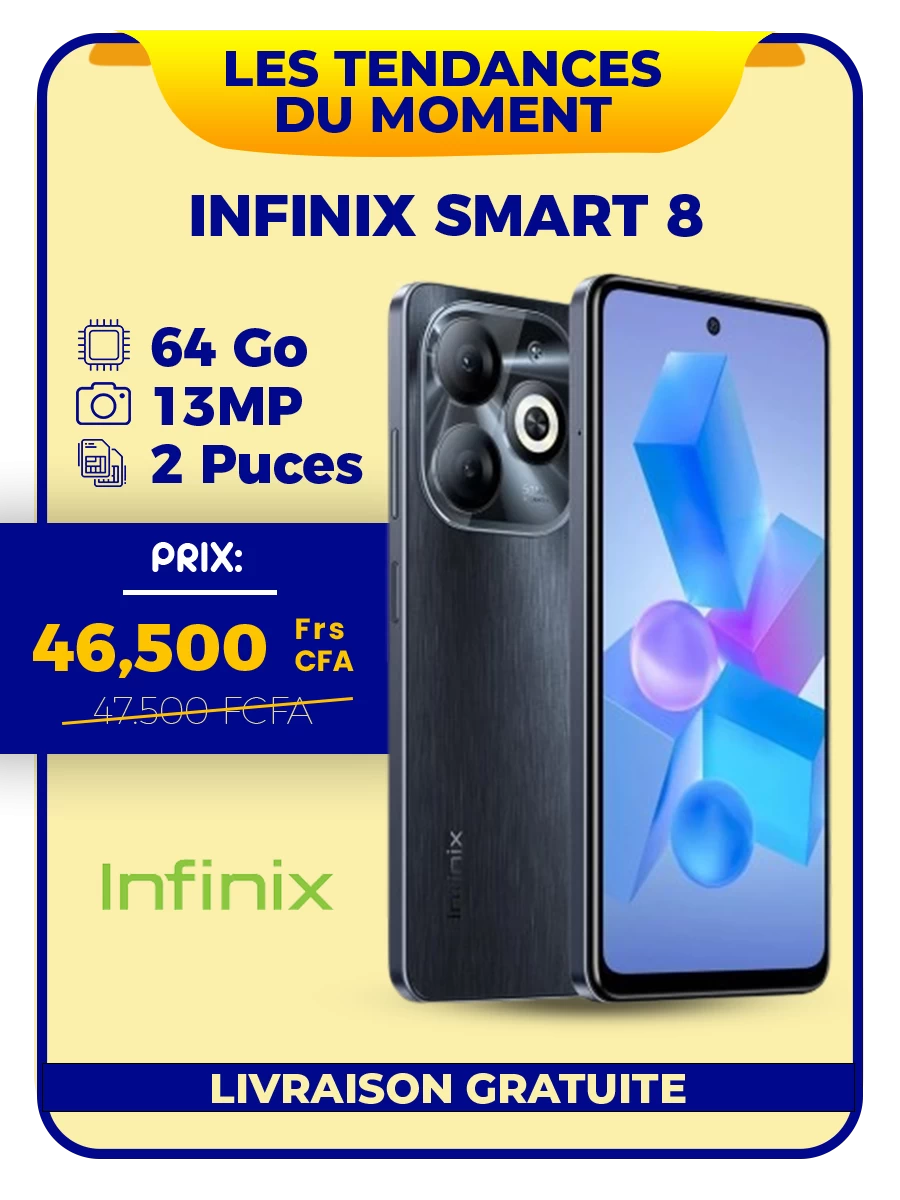 Smartphone Infinix Smart 8 - 64Go + 2Go - 13 MP -2 SIM - 5000 MAh -